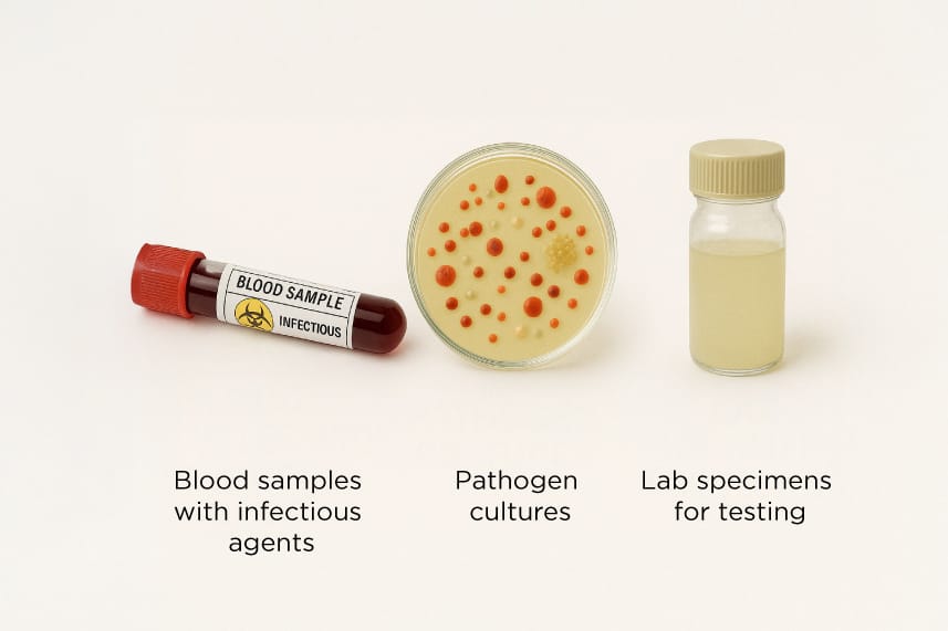 Biological substances that contain viruses, bacteria, or pathogens can leak and infect humans or contaminate surfaces. Air transport increases the speed at which dangerous pathogens can cross borders.